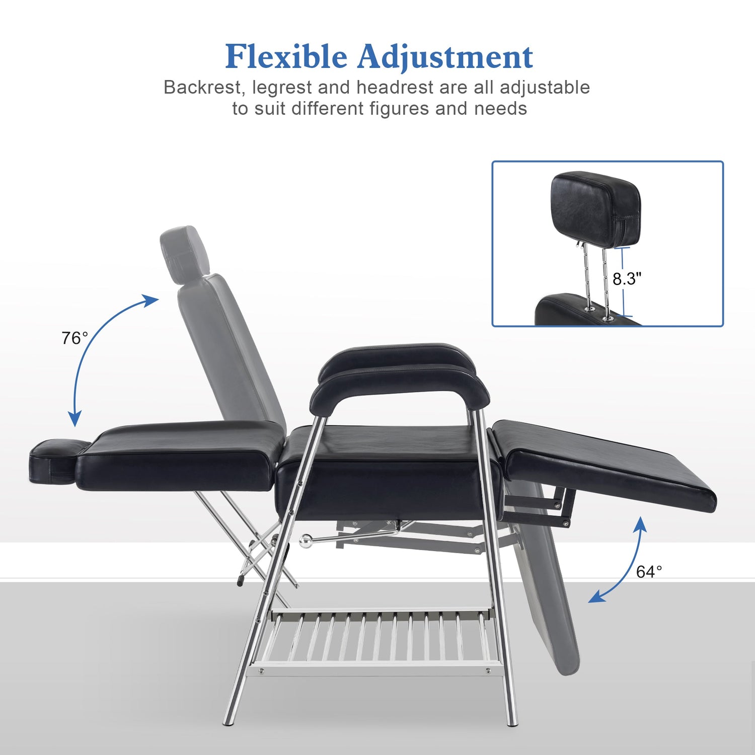 Professional Tattoo Chair With Headrest Massage Bed With Storage Shelf 2767